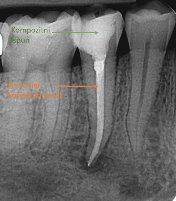 Saniran zub: učinjeno je liječenje korijenskog kanala, očišćen karijes te postavljen kompozitni ispun