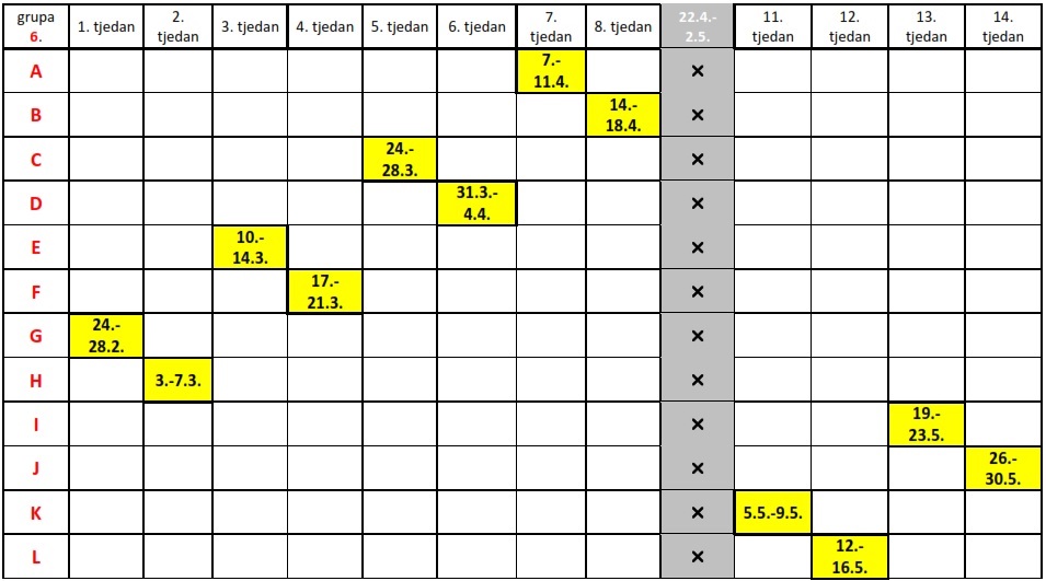 Smatra se da je student uredno pohađao vježbe (turnus) ako nije izostao više od 1/5 sati (7 sati turnusa).