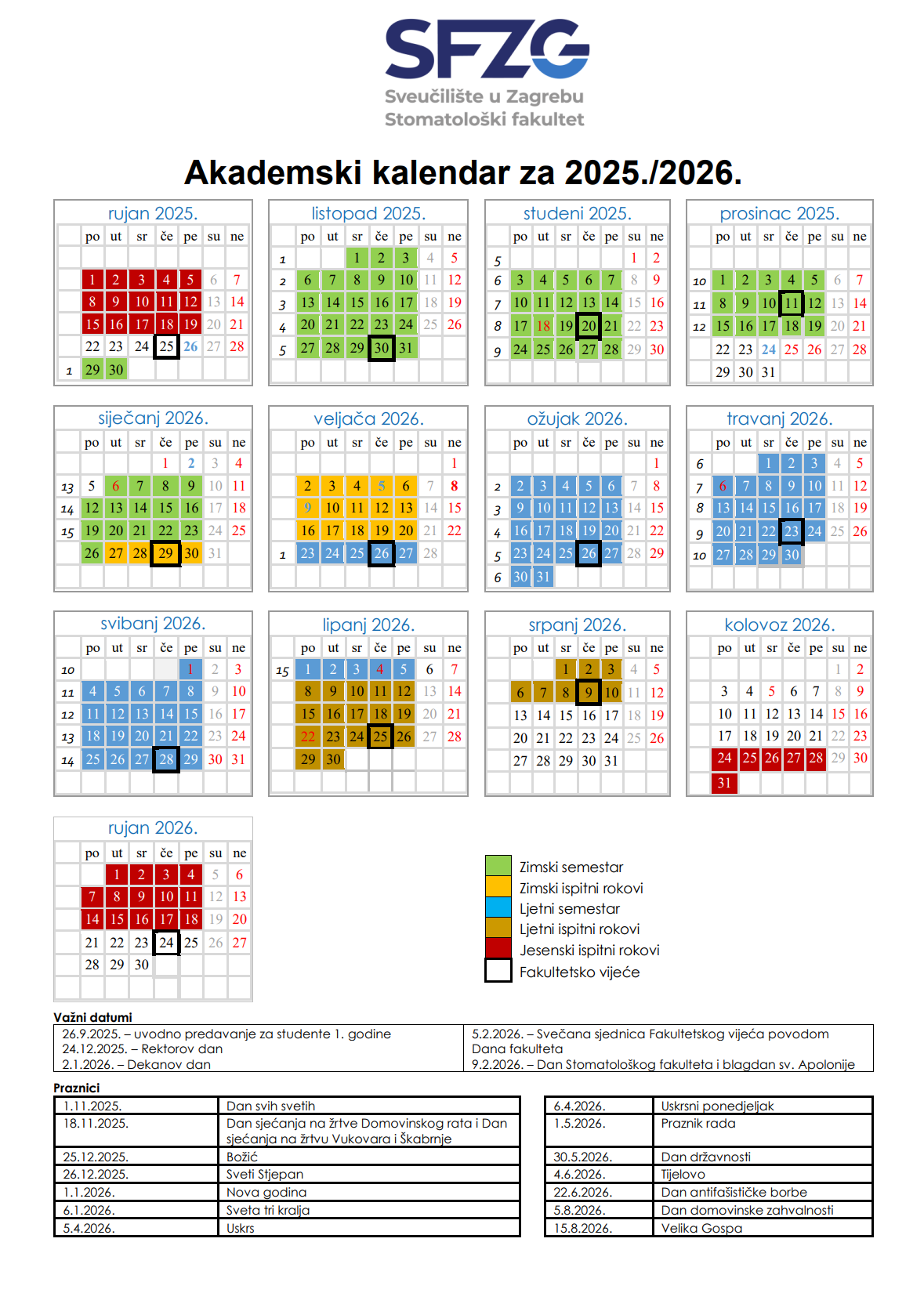 Akademski kalendar za 2025./2026. godinu u PDF obliku je dostupan na: LINKU