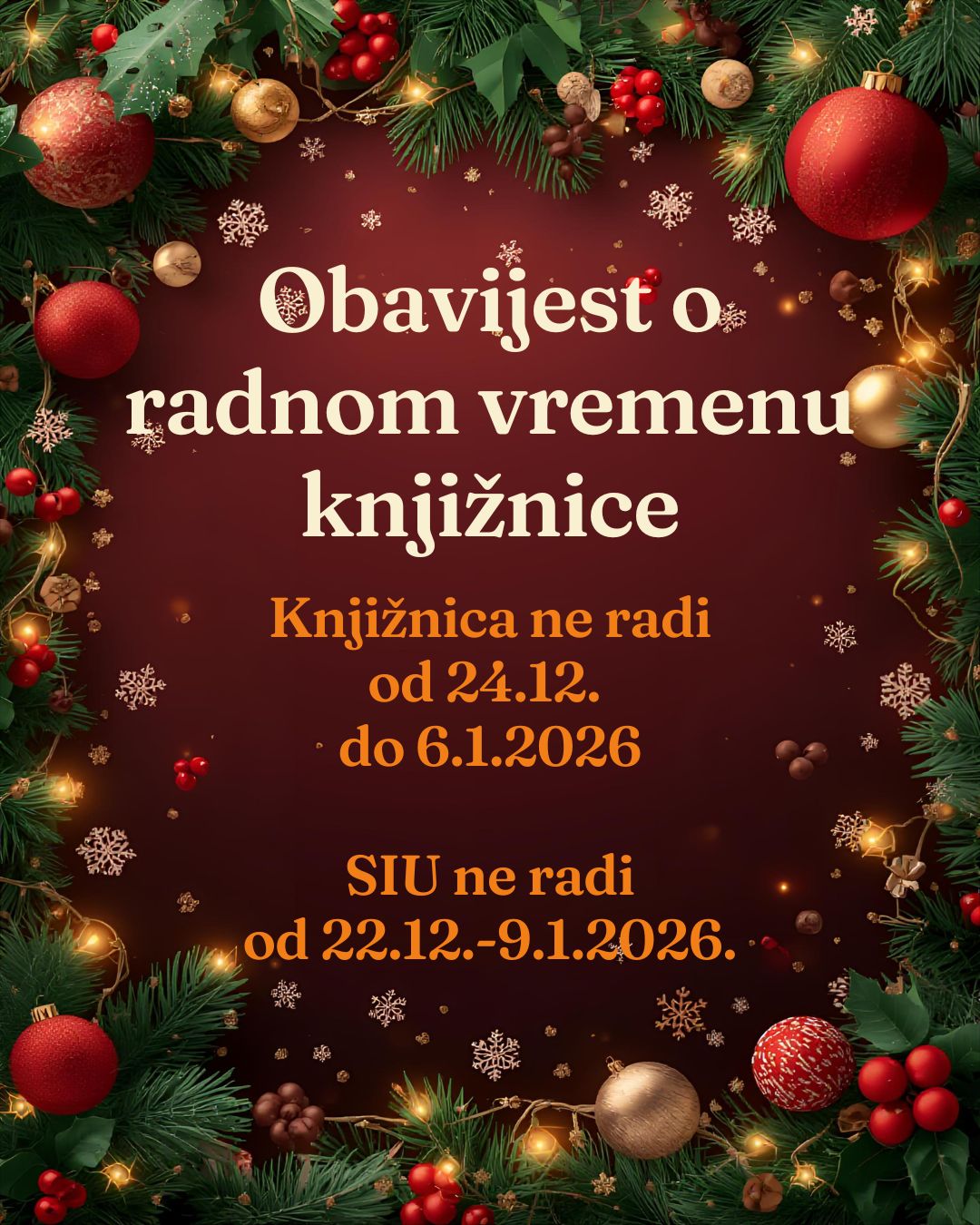 Rezervacije čitaoničkih primjeraka za korištenje iza 14 sati u SIU čitaonici prethodno treba rezervirati najkasnije do 14 sati putem elektroničke pošte: biblio(et)sfzg.hr