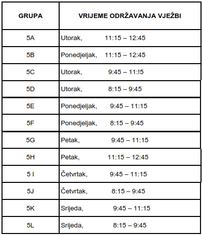 Student koji je izostao s više od 50% vježbi nema pravo nadoknade i ne može dobiti potpis nositelja predmeta.